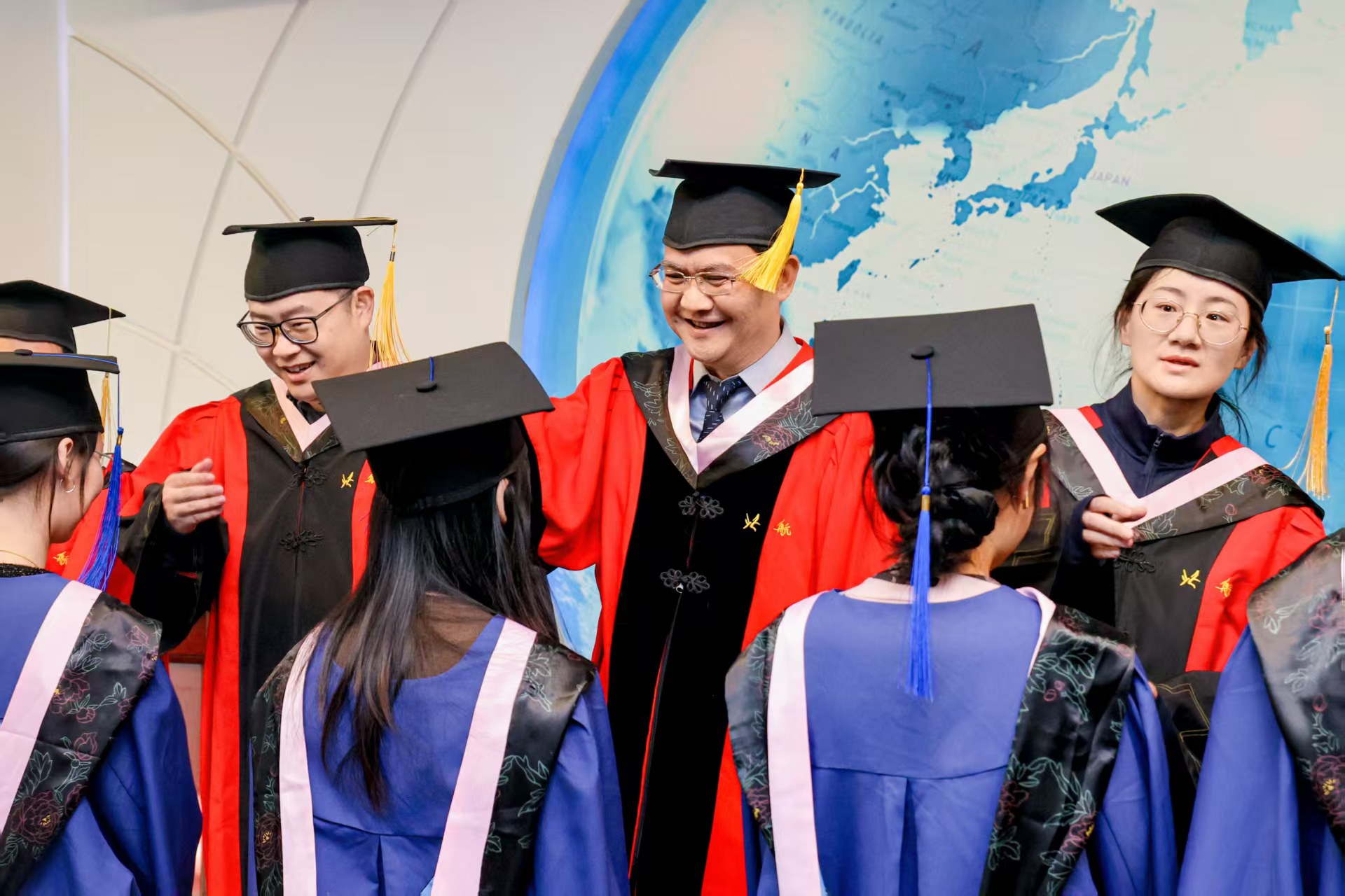 典礼结束后,学院举行了学位授予仪式。导师代表们为每一位毕业生拨穗正冠。