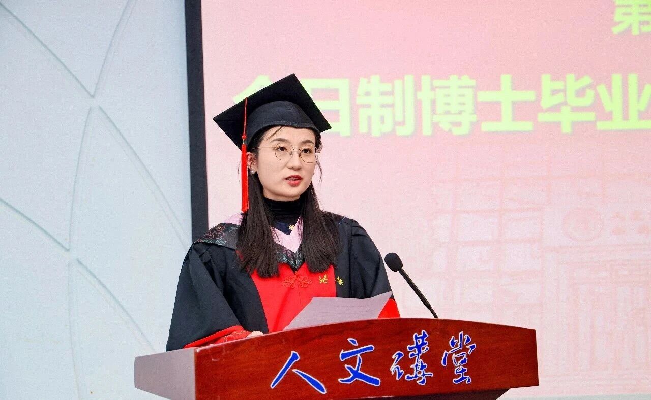 全日制博士毕业生代表刘建新同学分享了自己的读博感悟,以质朴的语言,讲述了科研路上的迷茫与坚守、与人相处的真诚与包容,以及面对困境时的乐观与成长。她坦言,博士生涯教会她的不仅是学术能力,更有直面挑战的勇气与从容处世的智慧,这份收获将伴随她未来的每一步前行。